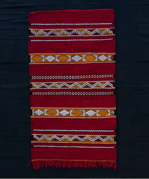 Típico kilim Hanbel de color rojo con motivos basados en la rica simbología bereber. Por sus dimensiones, ideal para un dormitorio.